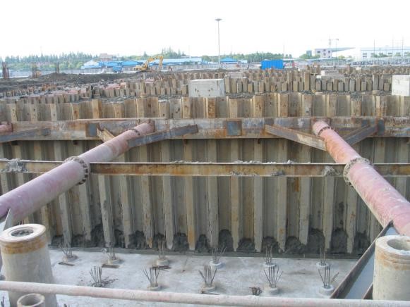 项目位于天津市红桥区光荣道基坑开挖深度为5.2m,基坑开挖面积为4.0万㎡,初始方案为预制桩+钢筋混凝土水平支撑,采用倾斜支护桩方案,取消了大面积的水平支撑,工期提前1个月以上,同样节省了由水平支撑所产生的造价。